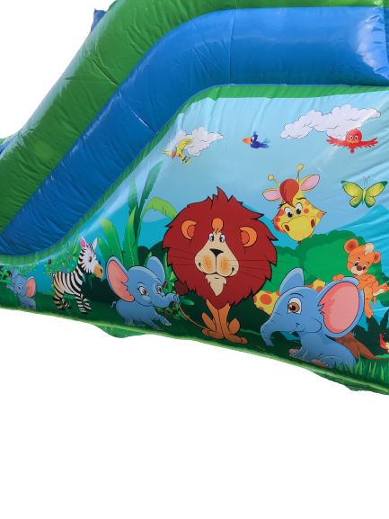Add a touch of adventure and excitement to your next party or event? Look no further than our Jungle Theme Platform Slide! With its stunning jungle graphics and thrilling slide, this inflatable attraction is sure to be a hit with kids