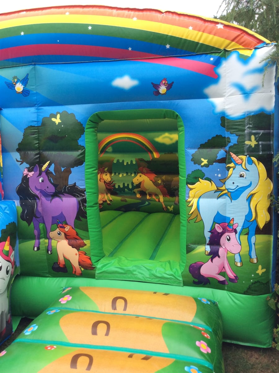 This unicorn bouncy castle is a great choice for those unicorn themed parties but if you have smaller children attending why not take a look at our unicorn soft play package with ball pool or add our unicorn hoppers.