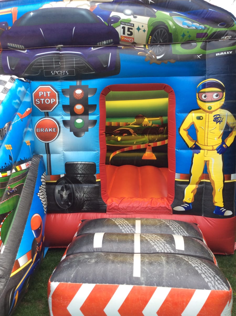 Ready to make your next party an unforgettable one? Reserve our Cars/Racing Bouncy Castle here today the process is very easy.