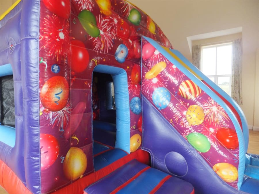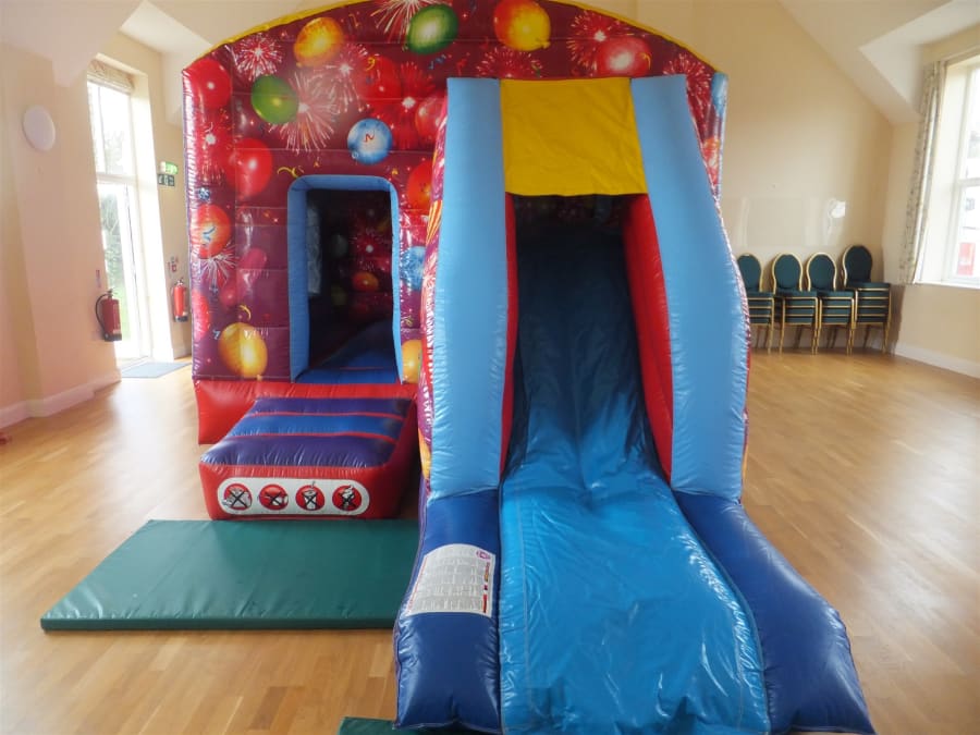 Make your next birthday party a memorable one with our Celebrations Bouncy Castle with Front Slide! This vibrant and exciting castle is perfect for both boys and girls, featuring colourful balloon artwork that will add a festive touch to any celebration.