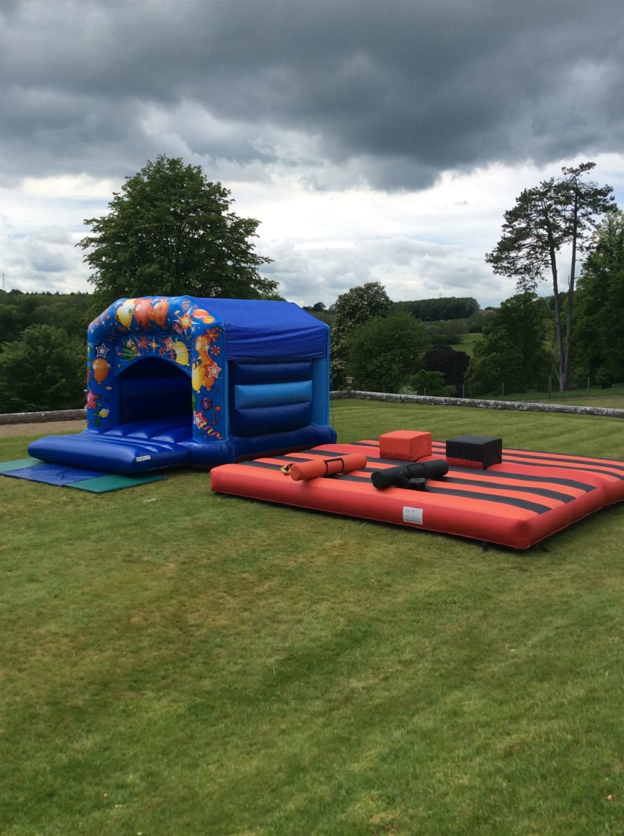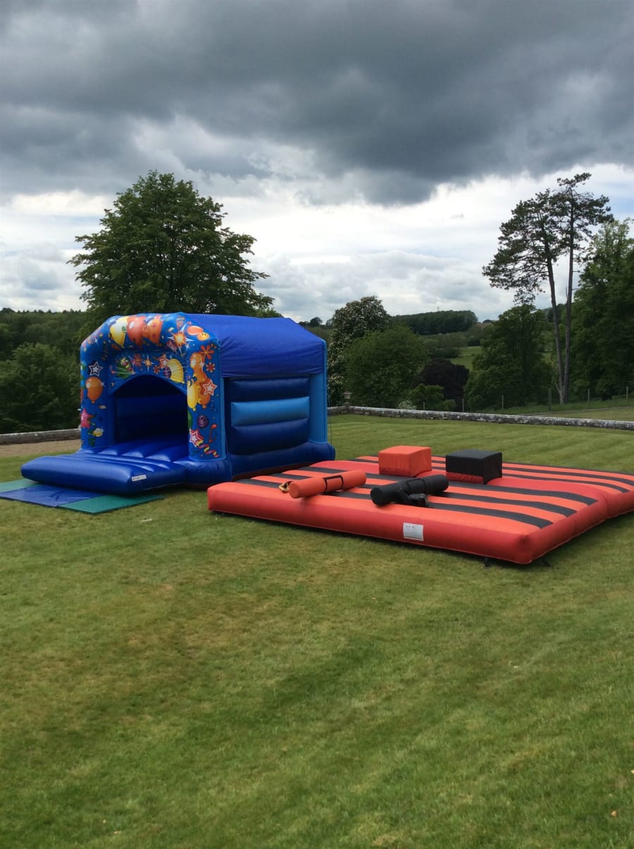 - Includes a family bouncy castle and a thrilling gladiator duel game
