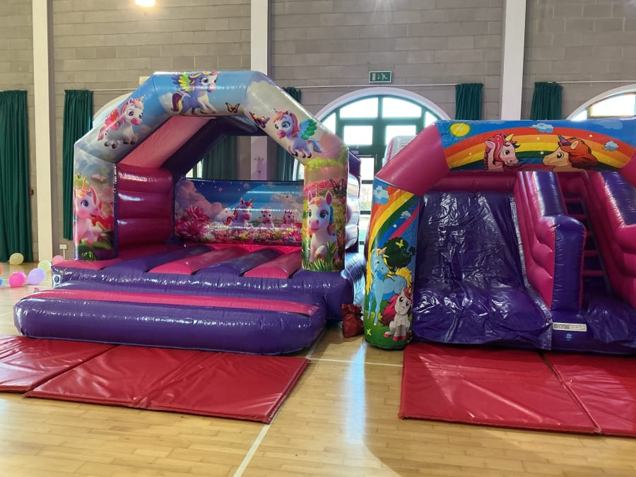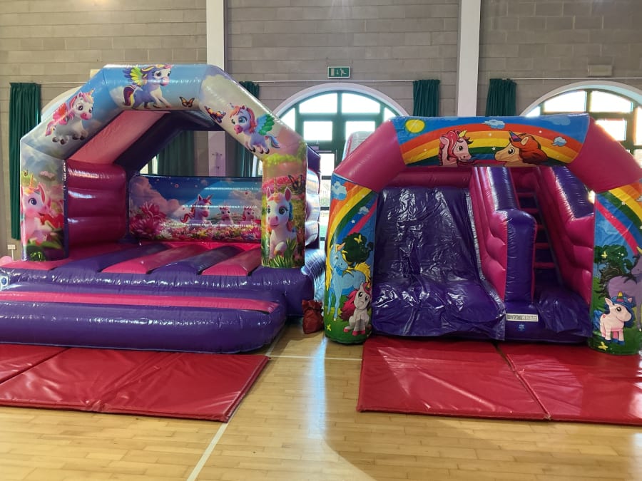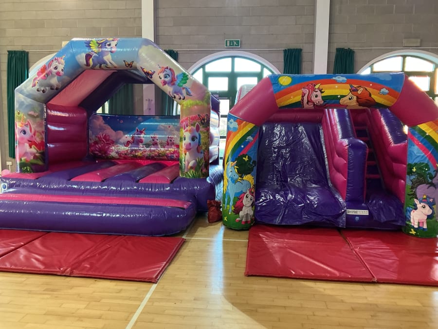 Our unicorn bouncy castle with separate unicorn themed slide is designed with safety fun, and convenience in mind. All equipment is regularly cleaned and inspected, ensuring a safe and hygienic play environment.